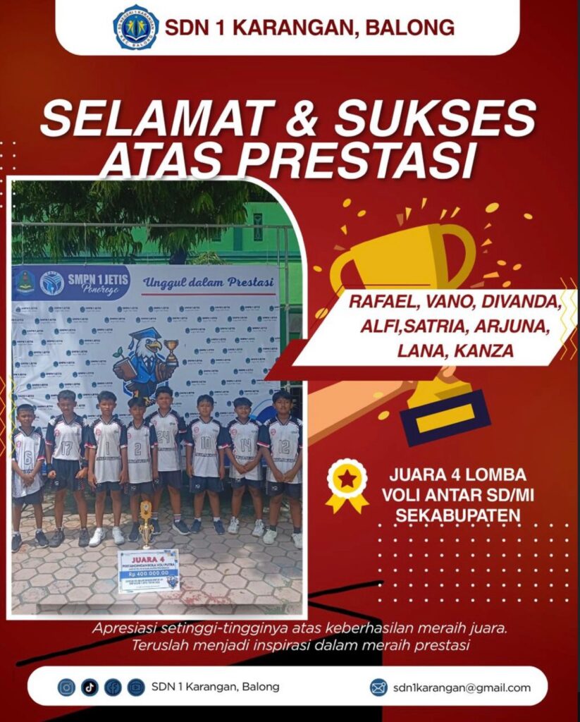 “Prestasi yang diraih siswa menjadi bukti semangat belajar, kerja keras, dan keberanian untuk mencoba hal baru. Setiap pencapaian adalah kebanggaan bersama yang membawa nama baik sekolah di bidang akademik maupun nonakademik”